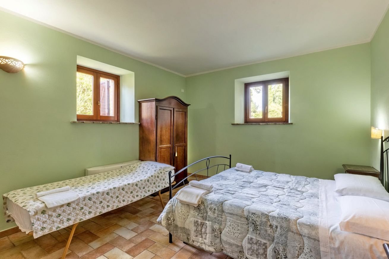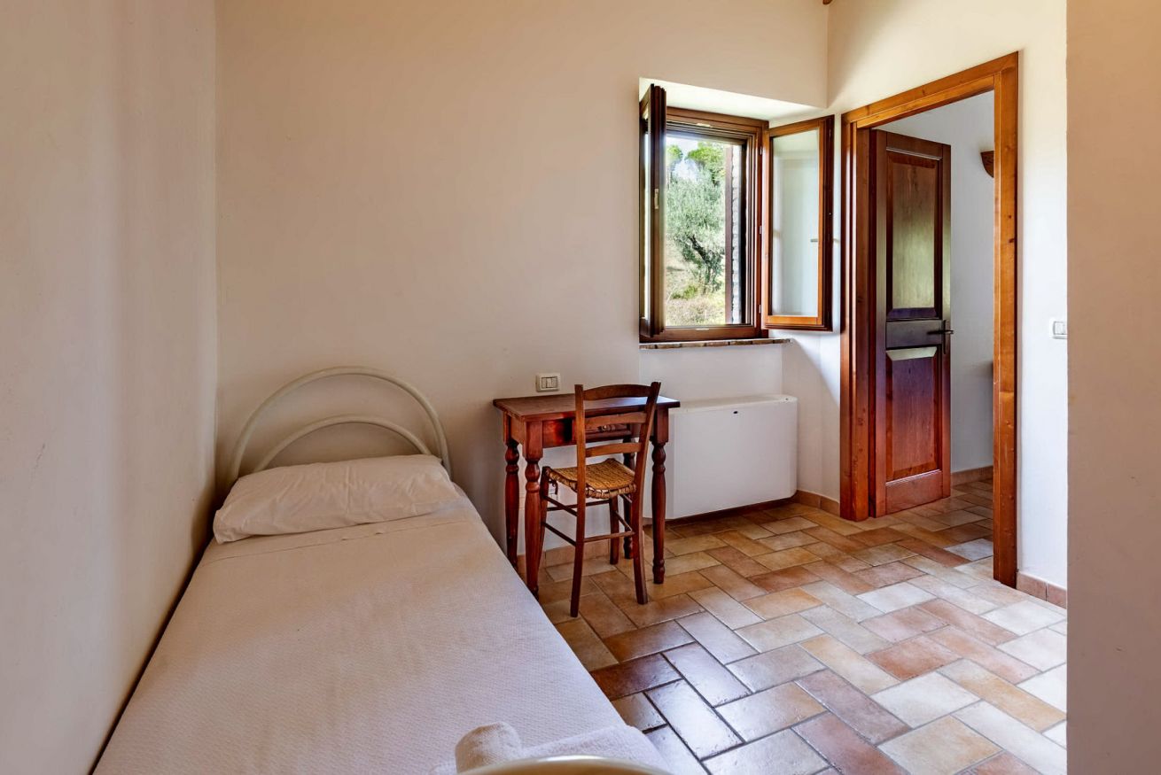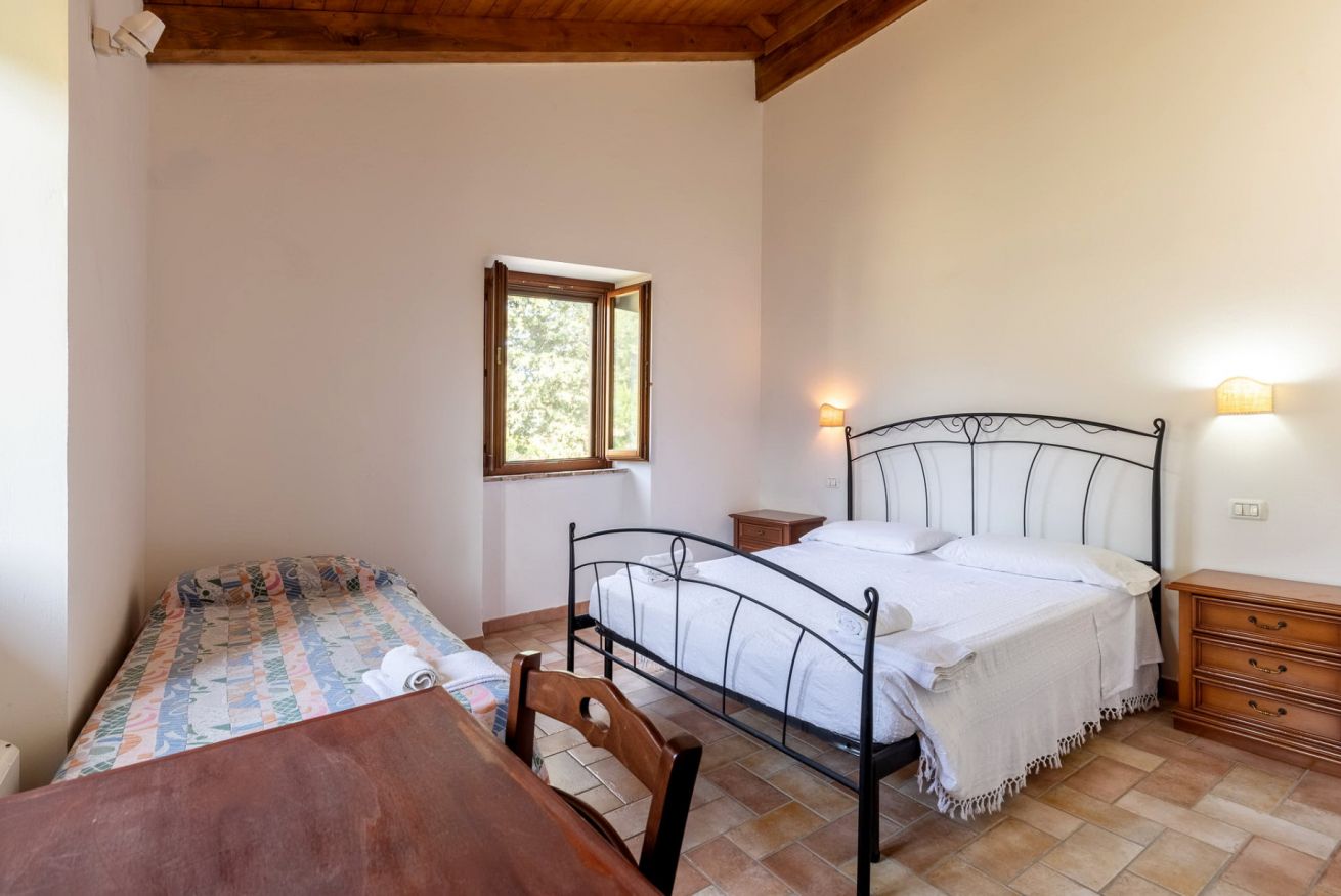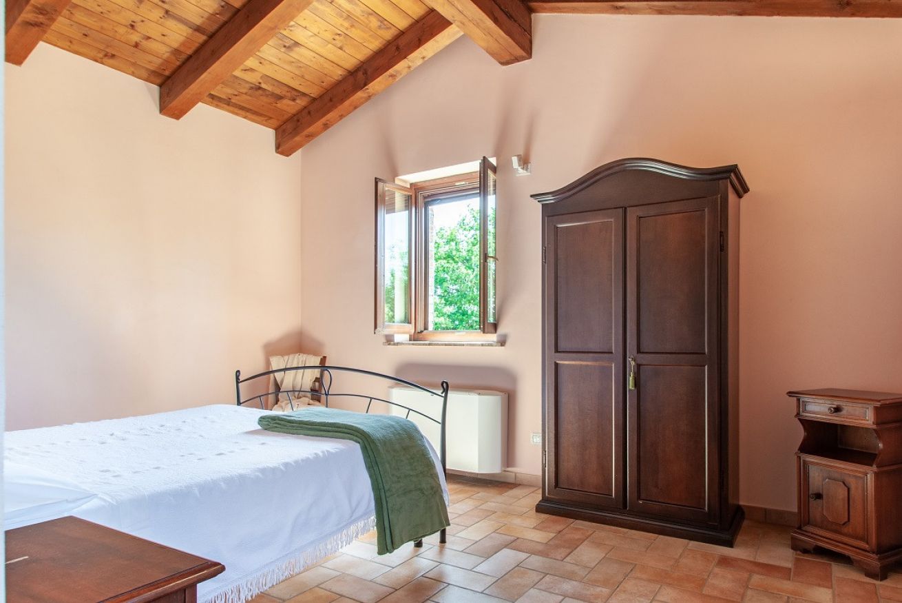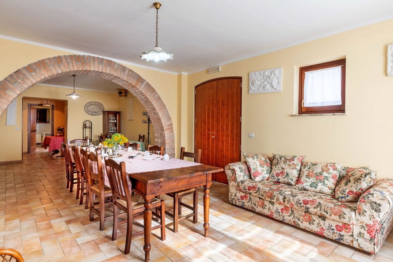 Il Casolare composto da 6 camere da letto con i bagni privati, cucina attrezzata, zona soggiorno, bagno di servizio, ampio giardino con il barbecue, piscina privata e parcheggio.