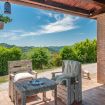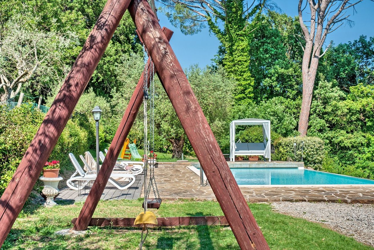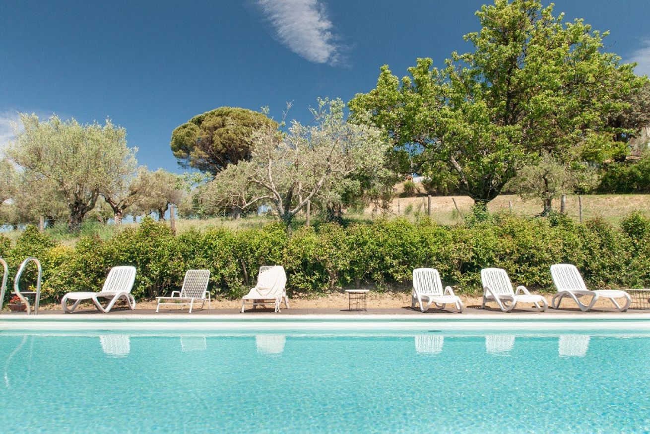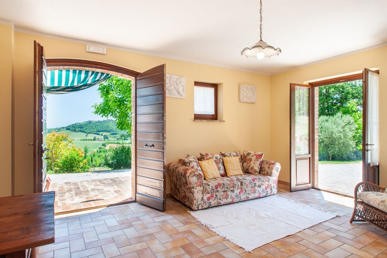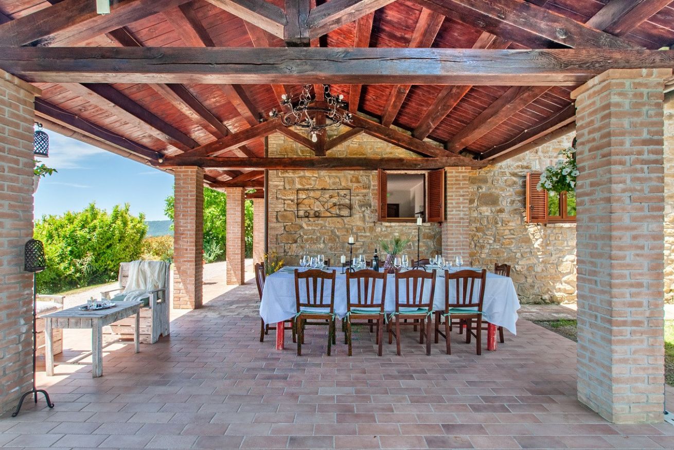 Il Casolare composto da 6 camere da letto con i bagni privati, cucina attrezzata, zona soggiorno, bagno di servizio, ampio giardino con il barbecue, piscina privata e parcheggio.